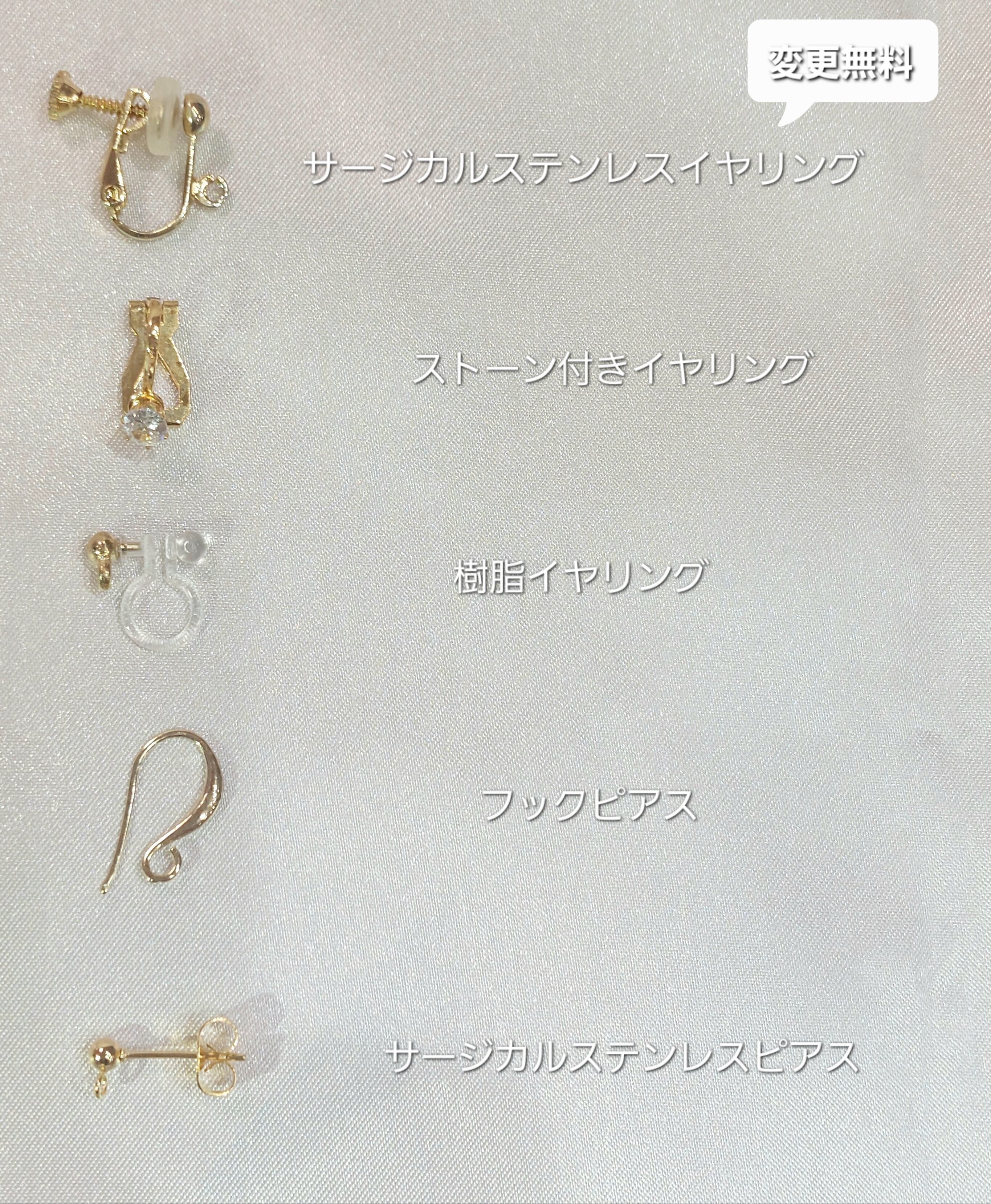 ※イヤリングはピアス穴が空いていない方でもお使いいただけます。イヤリングからピアスに変更は無料でできますのでお気軽にご相談ください♪