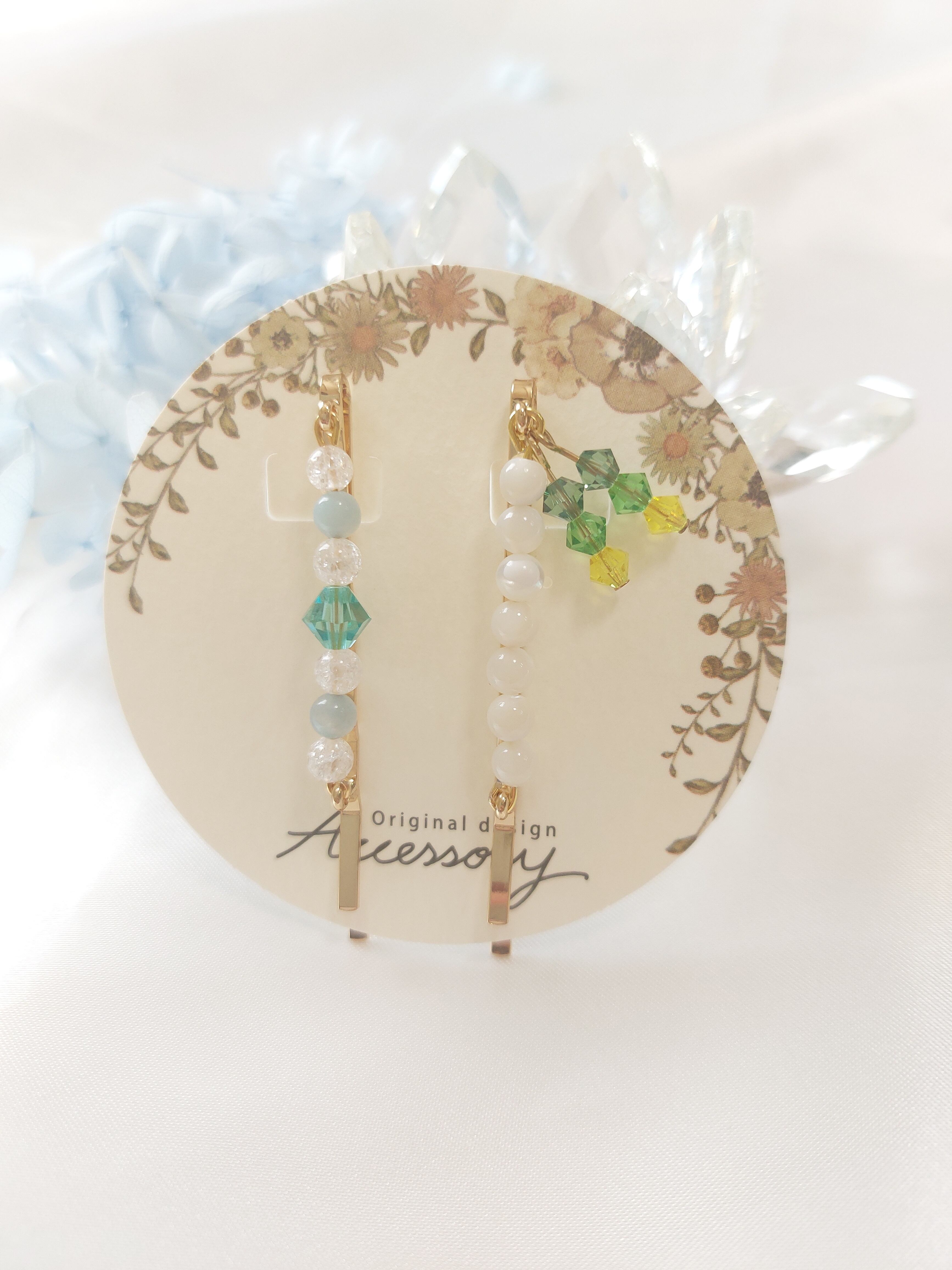 このヘアピンは、一つ一つ手作りで制作されています。天然石の美しさを最大限に引き出すように丁寧に仕上げました。